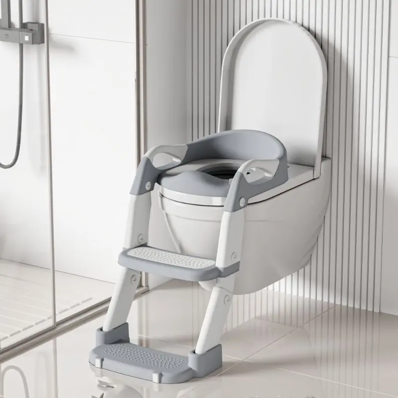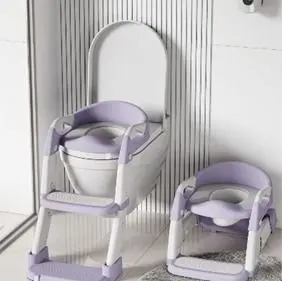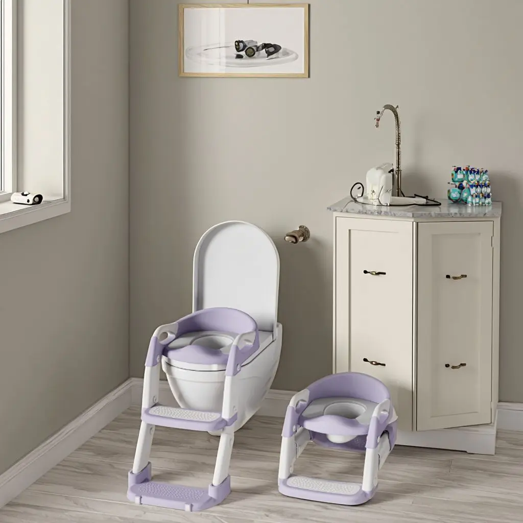 Accesorio de baño infantil 2 en 1Reductor c/ Escalera + pelelaColores Gris/blanco y Lila/blanco.Se envía surtido