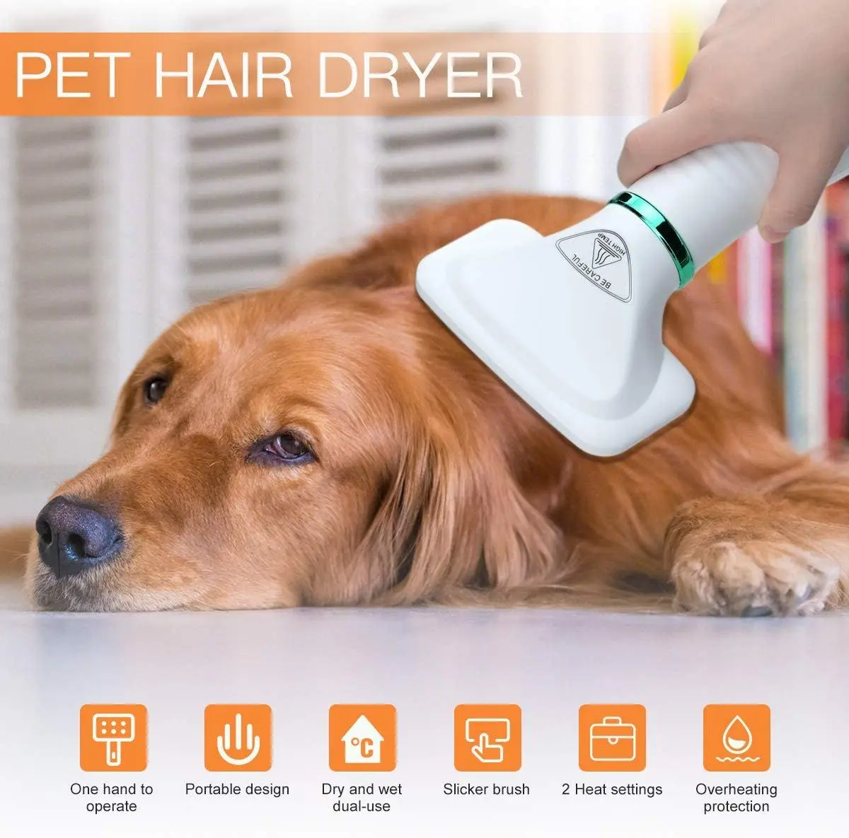 El secador de pelo para mascotas combina secador de pelo con peine para mascotas, puedes secar el pelo de la mascota y peinar para darle forma al mismo tiempo.