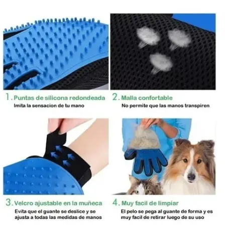 * Excelente guante con puntas de silicona. Sirve para masajear, peinar y desenredar el pelo de tu mascota.
